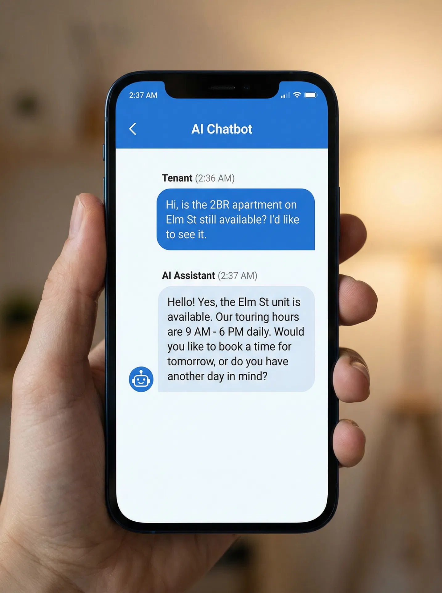 AI leasing assistant responding to inquiries